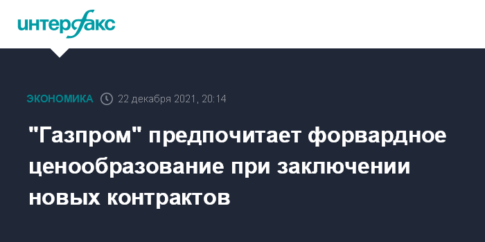 "Газпром" предпочитает форвардное ценообразование при заключении новых контрактов
