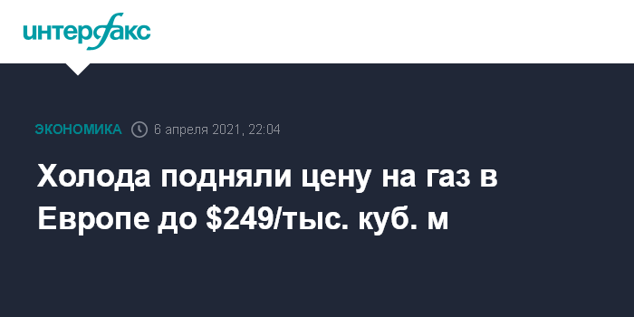 Контракт с поставкой в среду на голландском хабе TTF подорожал до $249/тыс. куб. м, что является максимальным значением с 9 февраля. Средняя котировка "на день вперед" в марте была $218, в феврале $219, в январе - $257 за тысячу кубометров.