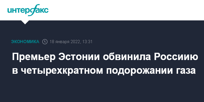 Москва. 18 января. Премьер-министр Эстонии Кая Каллас заявила в парламенте, что газ в Европе подорожал в четыре раза из-за того, что Россия сократила его поставки.