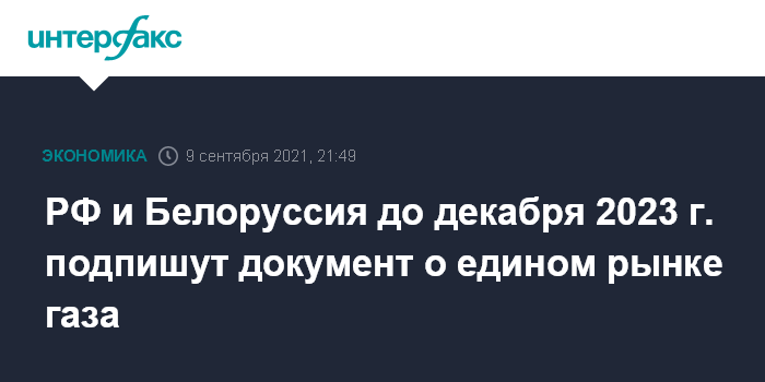 РФ и Белоруссия до декабря 2023 г. подпишут документ о едином рынке газа