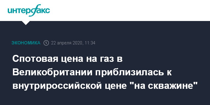 Спотовая цена на газ в Великобритании приблизилась к внутрироссийской цене "на скважине"