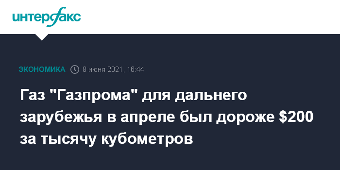 Более 80% продаж "Газпрома" в Европу сейчас осуществляются по спотовым индексам разного временного базиса. В апреле 2021 года спотовая цена в Европе (котировки "на день вперед" на хабе TTF) была в среднем $251 после $232 в первом квартале. В бюджет "Газпрома" на 2021 год заложена средняя цена экспорта газа в дальнее зарубежье в $170 за тысячу кубов.