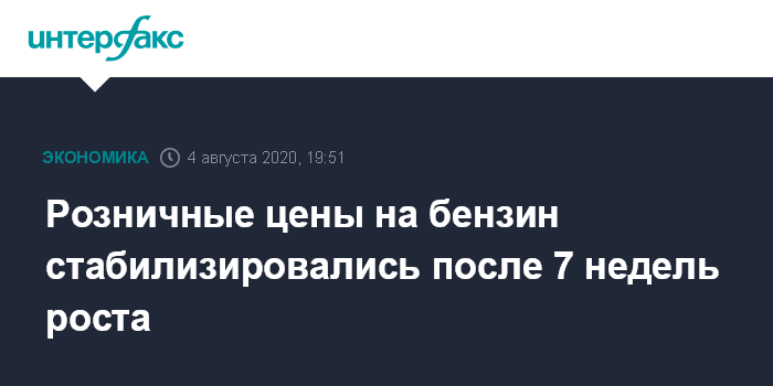 Москва. 4 августа. INTERFAX.RU - Розничные цены на бензин стабилизировались после семи недель непрерывного роста, свидетельствуют данные Центрального диспетчерского управления (ЦДУ) ТЭК.
