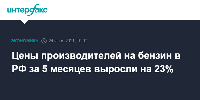 За январь-май 2021 года цены производителей на бензин выросли на 23%. В годовом выражении рост цен в мае составил 35,9%.