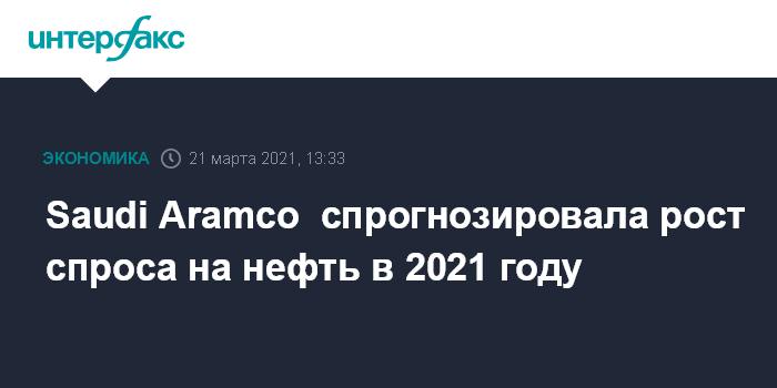 Москва. 21 марта. INTERFAX.RU - Генеральный директор компании Saudi Aramco Амин Нассер ожидает роста спроса на нефть в 2021 году.