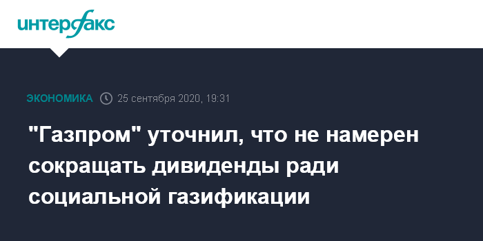 В связи с этим заместитель председателя правления "Газпрома" Фамил Садыгов заявил: "Газпром" готов выполнить свои обязательства по газификации в 2021-2025 годах в полном объеме, и для этого нам не потребуется снижение дивидендов".