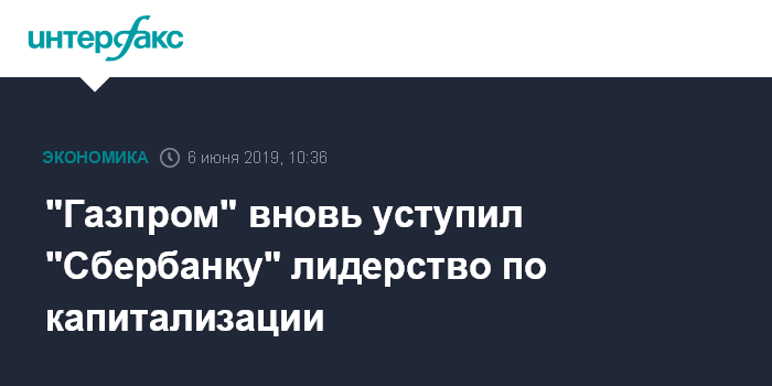 К 10:17 по Москве капитализация Сбербанка выросла до 5,4387 трлн рублей, стоимость "Газпрома" опустилась до 5,4335 трлн рублей; концерн занимал первую строчку по капитализации всего три дня, с 3 июня, когда бумаги взлетели на 9,5% на слухах о возможной отставке главы "Газпрома" Алексея Миллера (слухи не подтвердились), которые вызвали массовое принудительное закрытие игроками "коротких" позиций (short squeeze).