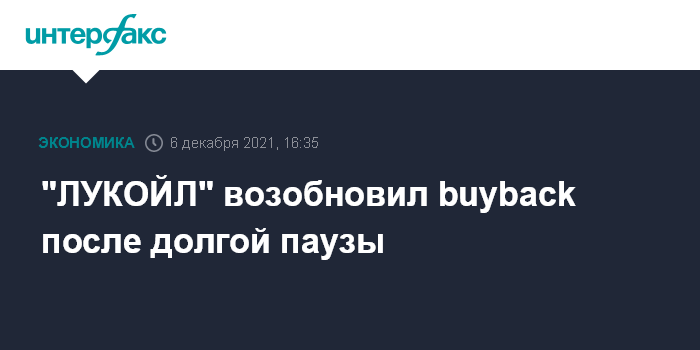 Москва. 6 декабря. "ЛУКОЙЛ" после длительного перерыва возобновил выкуп акций.
