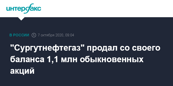 "Сургутнефтегаз" продал со своего баланса 1,1 млн обыкновенных акций
