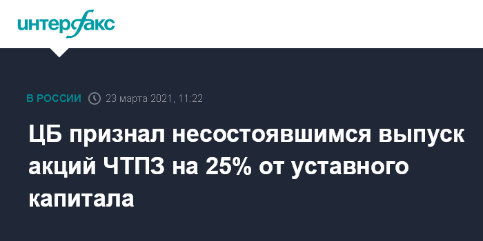 Москва. 23 марта. INTERFAX.RU - Банк России признал несостоявшимся дополнительный выпуск акций ПАО "Челябинский трубопрокатный завод" (ЧТПЗ) номинальной стоимостью 76 424 084 рублей, который компания планировала к размещению в начале прошлого года, до смены владельца, следует из сообщения ЧТПЗ. Выпуск фактически не размещался.