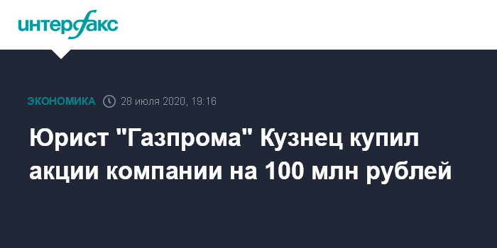 Юрист "Газпрома" Кузнец купил акции компании на 100 млн рублей