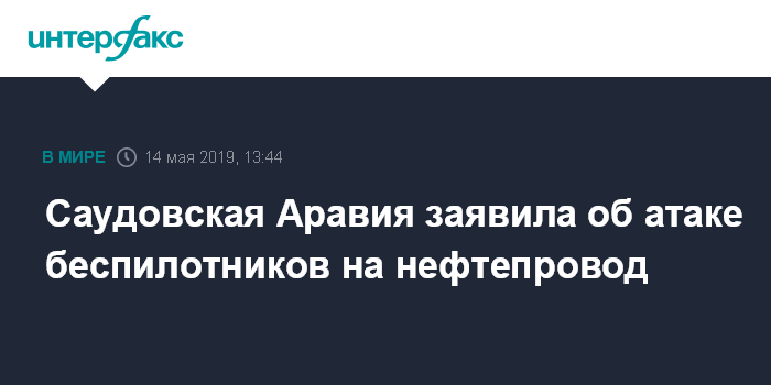 Москва. 14 мая. INTERFAX.RU - Власти Саудовской Аравии сообщили, что беспилотники нанесли удар по одному из нефтепроводов, следует из информации арабских СМИ.