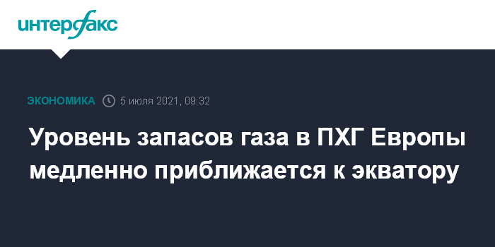 Уровень запасов газа в подземных хранилищах (ПХГ) Европы медленно приближается к экватору. По данным Gas Infrastructure Europe, по итогам газовых суток 3 июля (то есть на утро воскресенья) уровень запасов газа достиг 48,3%.