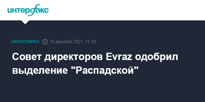 Москва. 15 декабря. Совет директоров Evraz одобрил выделение угольного бизнеса, который консолидирован на ПАО "Распадская", сообщила компания.