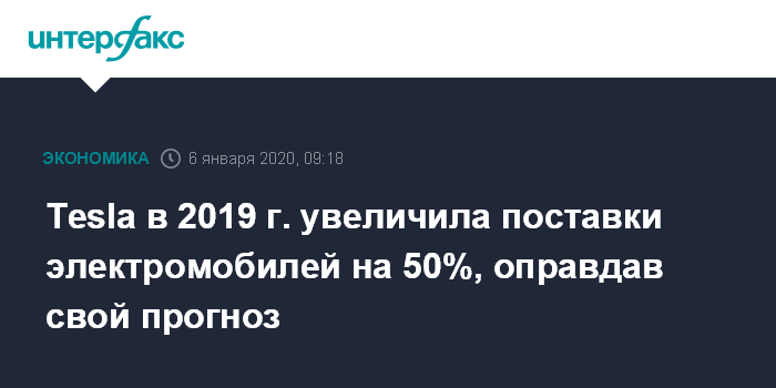 Tesla в 2019 г. увеличила поставки электромобилей на 50%, оправдав свой прогноз