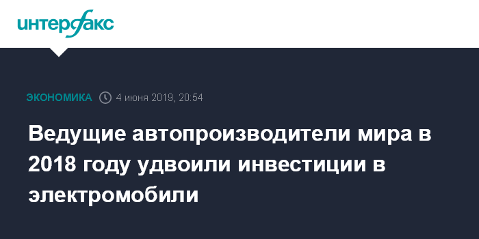 Москва. 4 июня. INTERFAX.RU - Ведущие автопроизводители мира в 2018 году удвоили инвестиции в расширение мощностей по производству электромобилей, при этом капиталовложения в выпуск автомобилей с двигателями внутреннего сгорания (ДВС) сократились, свидетельствует исследование международной консалтинговой компании Ernst & Young (EY).