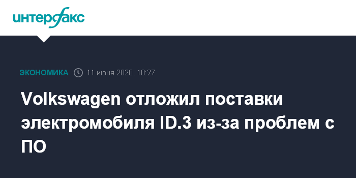 Москва. 11 июня. INTERFAX.RU - Volkswagen объвил, что отложит до сентября поставки клиентам своего флагманского электромобиля ID.3 из-за проблем с программным обеспечением.
