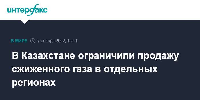 Москва. 7 января. В западных и южных регионах Казахстана введены временные ограничения на продажу сжиженного нефтяного газа, сообщило Минэнерго страны. Массовые протесты в стране начались 2 января из-за резкого роста цен на этот газ, повышение цен уже отменили.