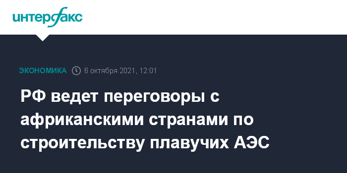 Москва. 6 октября. INTERFAX.RU - Россия ведет переговоры с африканскими странами по строительству плавучих АЭС, сообщил вице-премьер РФ Юрий Трутнев, выступая в среду в Совете Федерации.