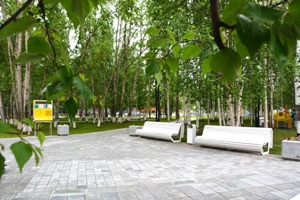 Территория с лесным массивом реконструирована с максимальным сохранением зелёных насаждений. В концепции благоустройства использованы экологичные материалы, энергосберегающие технологии и элементы современного дизайна. Для посетителей созданы новые прогулочные маршруты. Зоны отдыха оснащены эргономичными скамейками, для детей обустроены стилизованные игровые площадки.