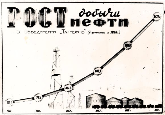 Рост добычи у «Татнефти» в 1950-1955 гг. (в процентах). Фото из фондов Бугульминского краеведческого музея.