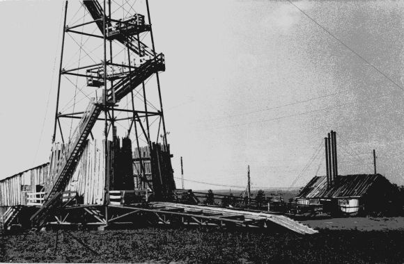 Подъем буровой. Фото из фондов Бугульминского краеведческого музея.
