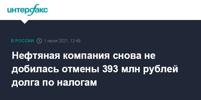 Нефтяная компания снова не добилась отмены 393 млн рублей долга по налогам