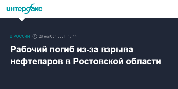 Москва. 28 ноября. В Ростовской области в воскресенье произошел взрыв нефтепаров при регламентных работах на скважине, есть погибший и пострадавшие, сообщили "Интерфаксу" в пресс-службе ГУ МЧС России по Ростовской области.
