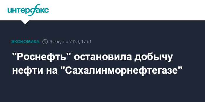 Москва. 3 августа. INTERFAX.RU - НК "Роснефть" в конце июля полностью остановила добычу нефти на "РН-Сахалинморнефтегаз", следует из статистики, с которой ознакомился "Интерфакс".