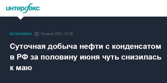 Суточная добыча нефти с конденсатом в РФ за половину июня чуть снизилась к маю