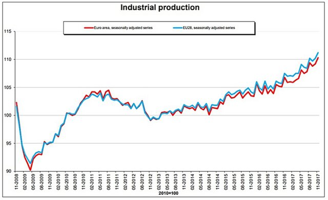 Промышленное производство в еврозоне в ноябре выросло больше, чем ожидалось, что подчеркивает сильный импульс к росту в регионе. Экономика еврозоны в прошлом году демонстрировала лучшую динамику за десятилетие.