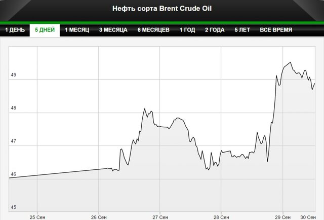 Накануне нефть подорожала на 5-6%, после того как члены ОПЕК достигли соглашения об ограничении добычи. К 8:18 мск четверга стоимость ноябрьских фьючерсов на нефть марки Brent на торгах в Лондоне составляла $48,6 за баррель, ноябрьские фьючерсы на WTI в Нью-Йорке торговались на уровне $47,06 за баррель. Тем не менее это дает лишь небольшую отсрочку для бурильщиков и нефтесервисных компаний, которые находятся на грани.